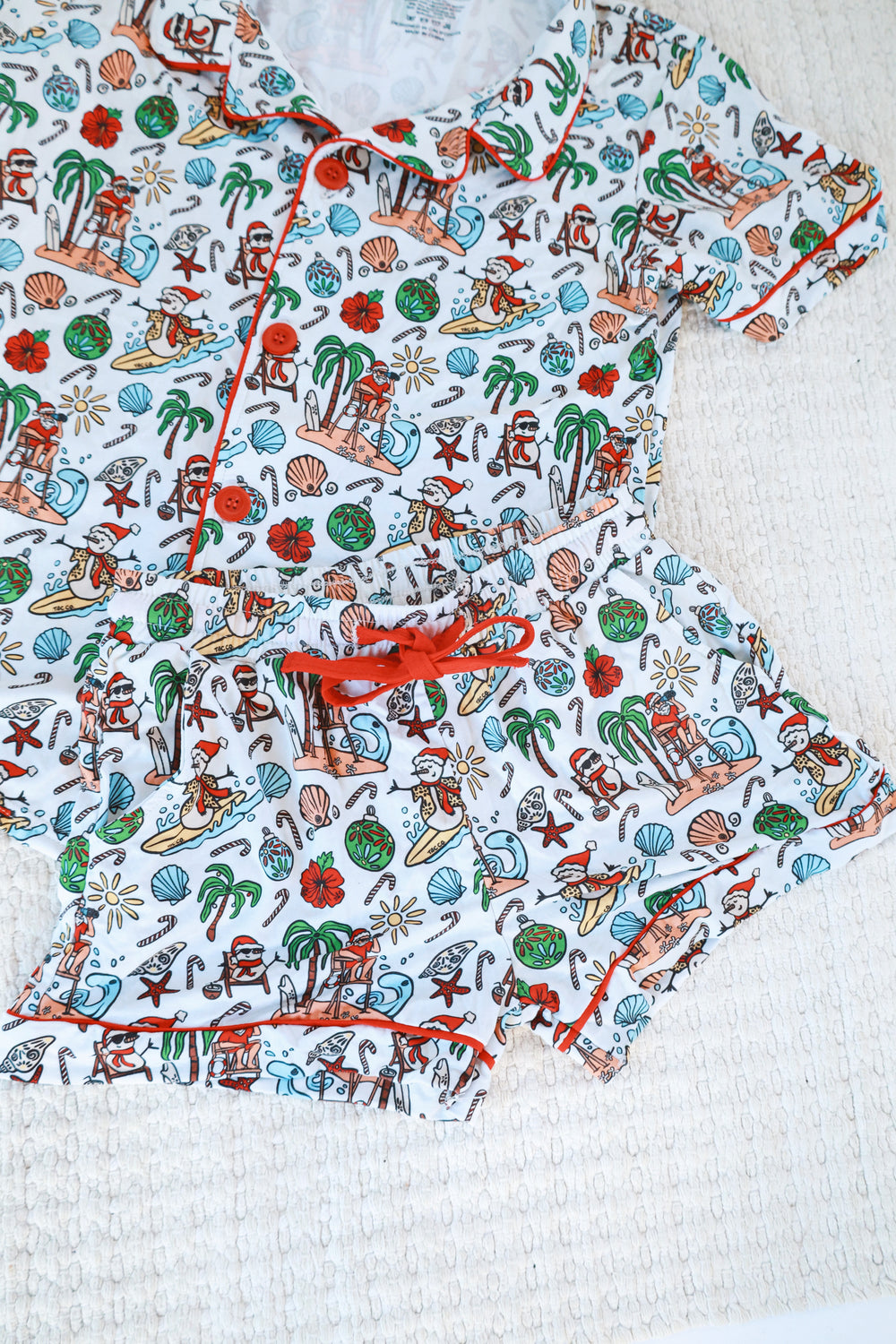 Part of our Matching Family Christmas Pajamas, the Jolly Waves Girls Bamboo Short Set brings a coastal twist to Christmas mornings.