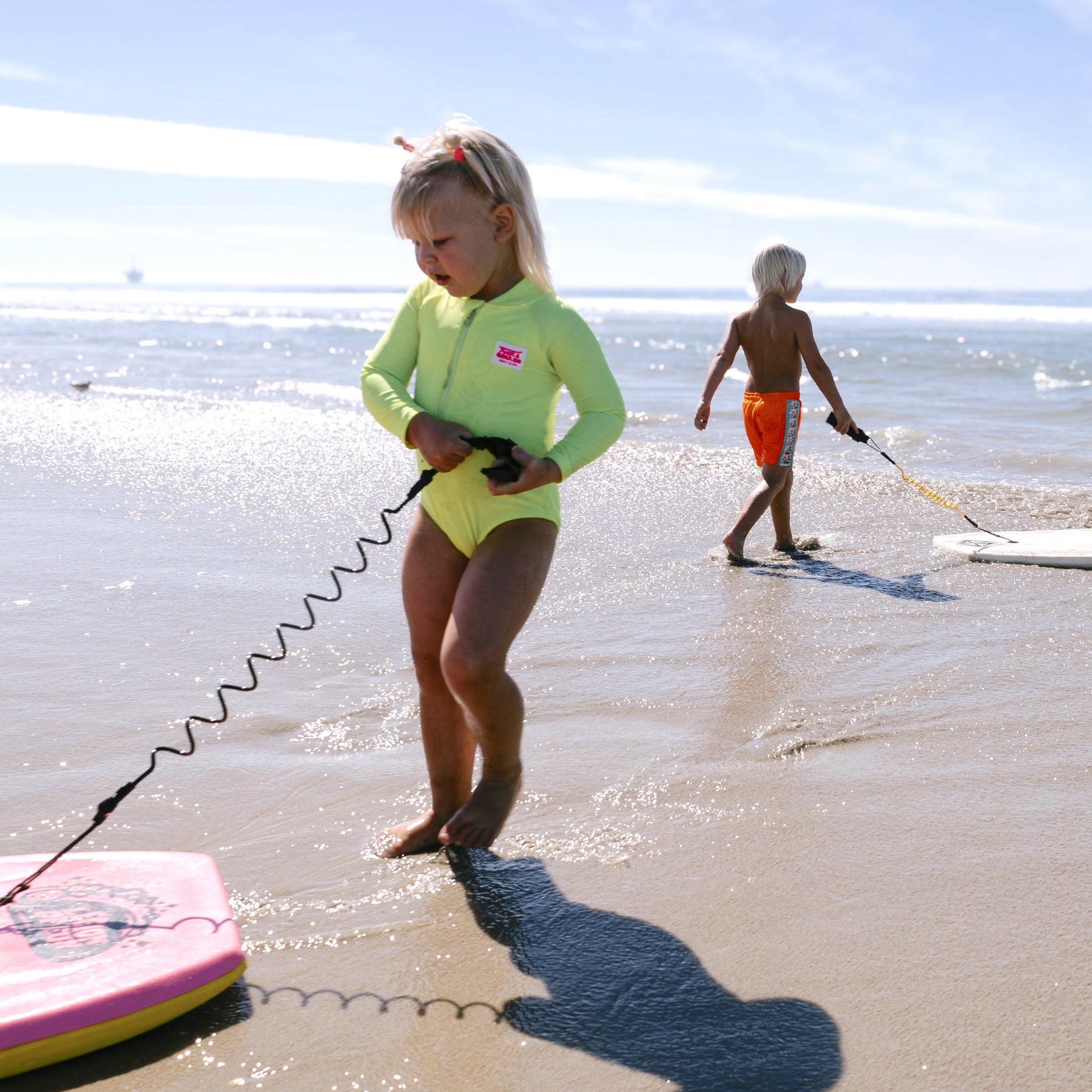 The Hi-Viz Neon Yellow Girls One-Piece Long Sleeve Swimsuit is built for maximum visibility, so you can easily spot your little one whether she’s playing in the waves, exploring the tide pools, or running along the shore. This high-contrast neon yellow stands out in and out of the water, making it the ultimate safety-first swimsuit for every beach day.